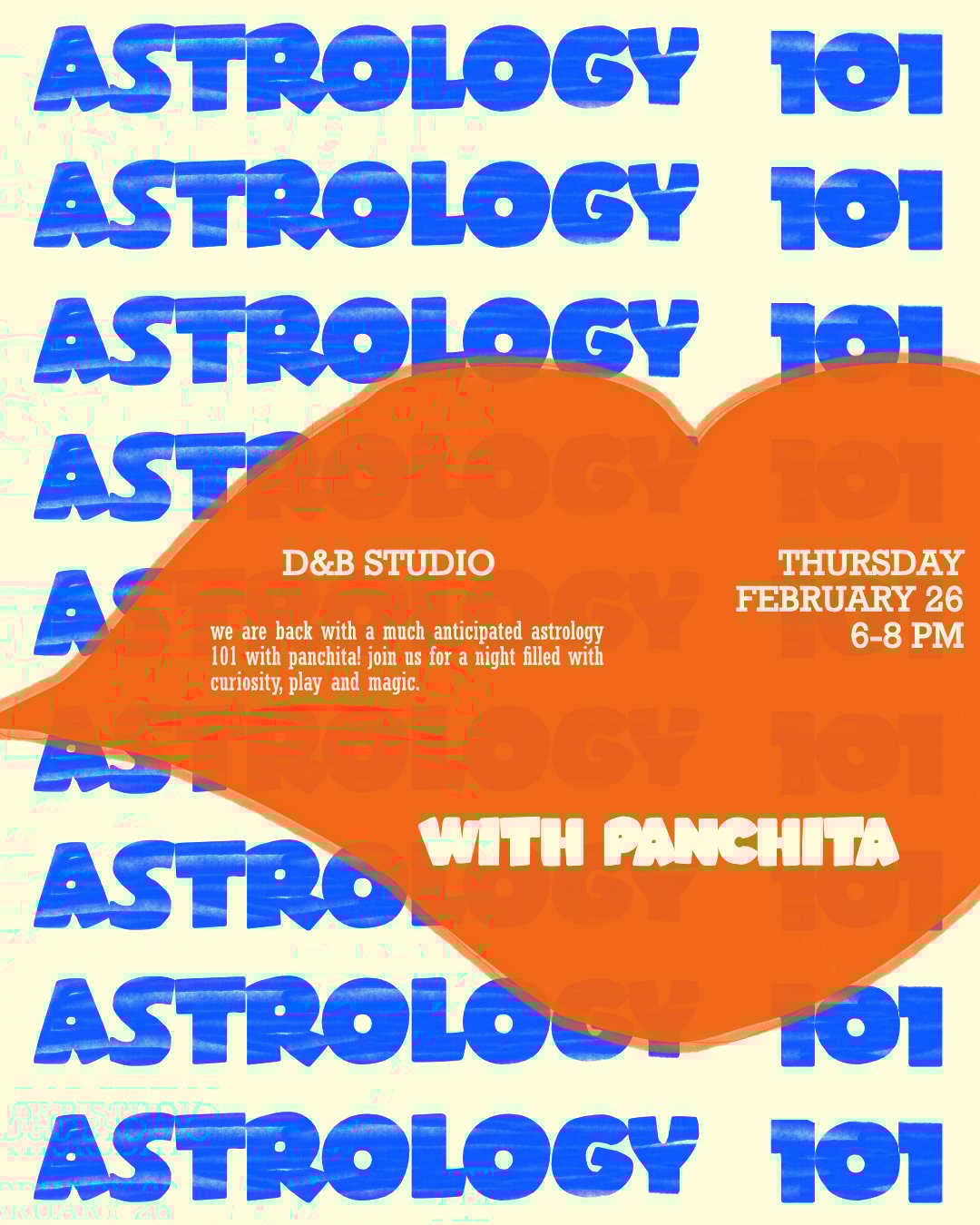 Join us on February 26 from 6–8pm inside the dreamy vintage fashion showroom of D and B I Studios at Mana Contemporary for a playful, powerful astrology masterclass.